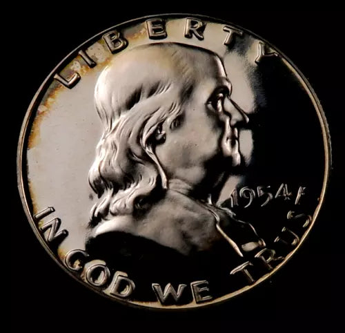 1954 Franklin Half Dollar - Gem Proof CAMEO (rainbow toned)